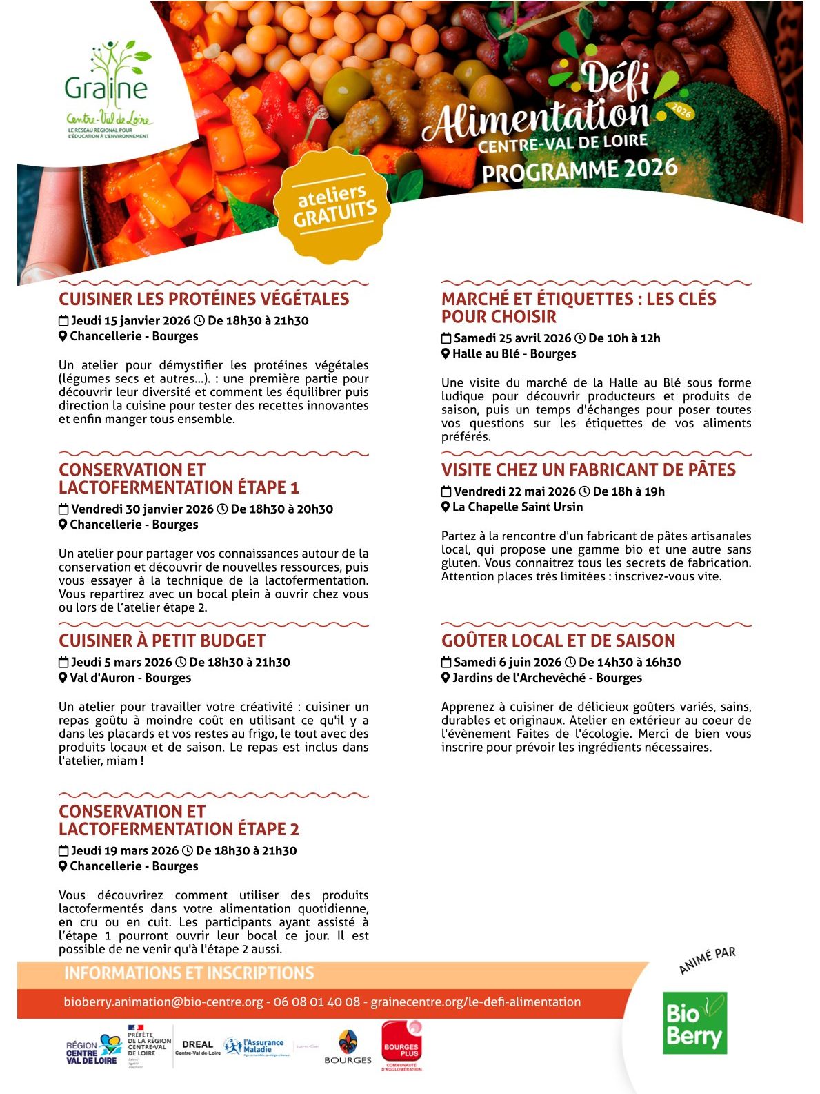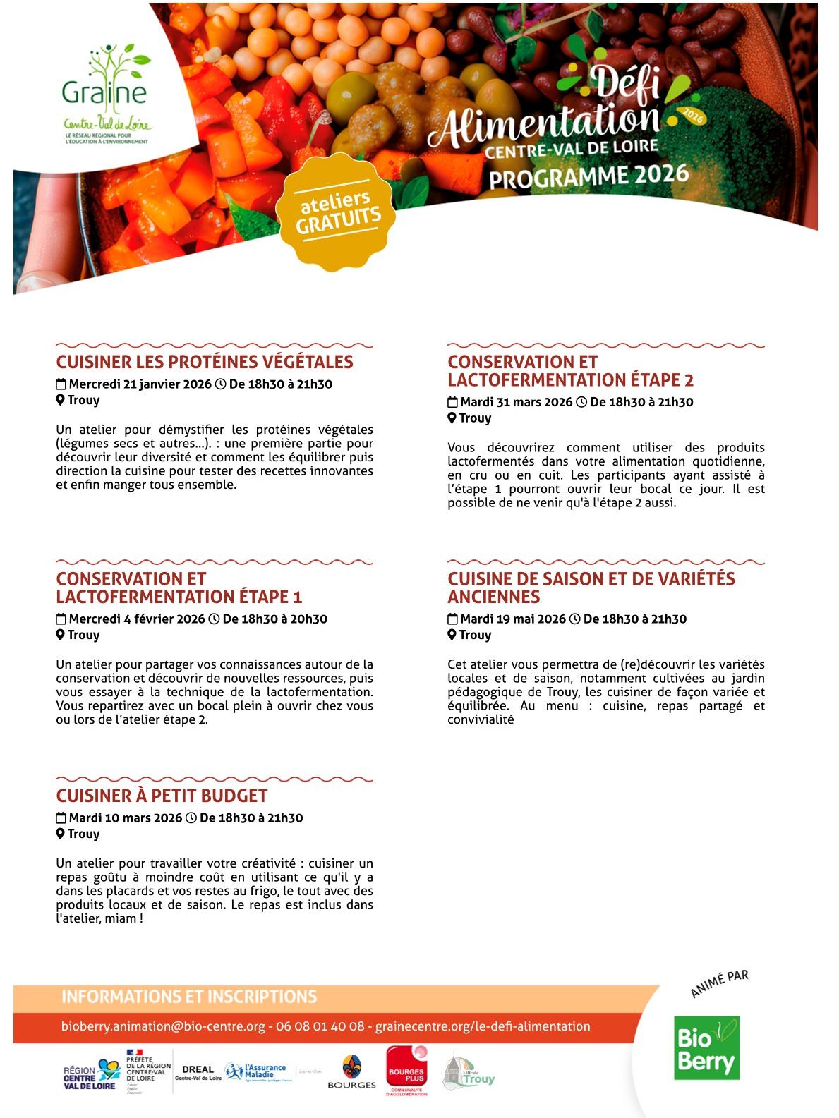 En 2026, BioBerry animera un Défi Alimentation partagé entre la ville de Bourges et l'agglomération de Bourges (centré sur Trouy), composé de :